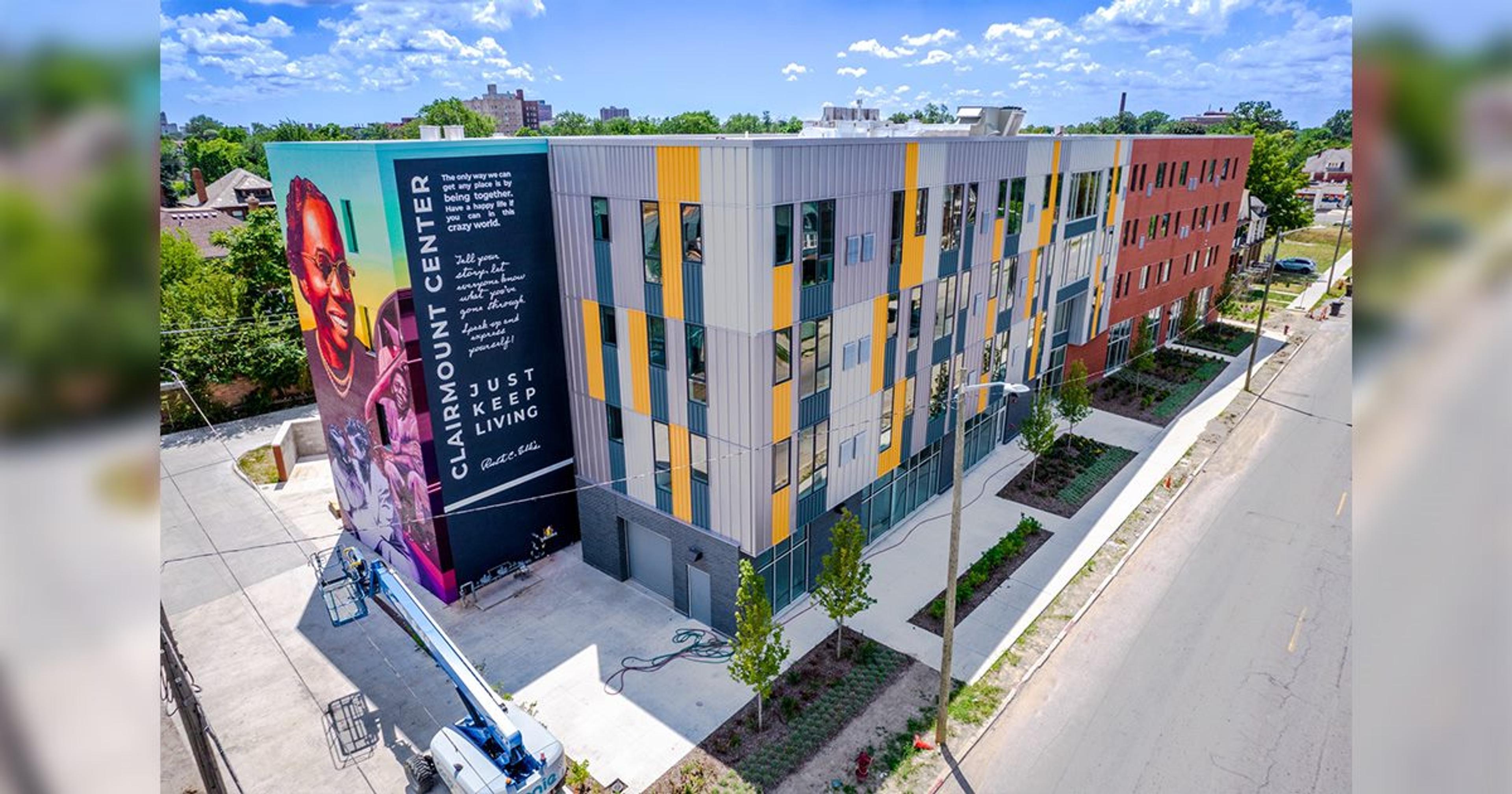 The 43-unit, mixed-use Clairmount Center in Detroit offers community amenities like a resource library and technology center, community kitchen and pharmacy as well as a health and wellness center where clients can access primary care services, gender-affirming care and HIV and STI prevention and treatment services. The nonprofit organization’s center benefits from an on-site art therapy studio that includes traditional forms of behavioral health – like talk counseling – as well as less conventional forms like art therapy, which can be a less intimidating form of therapy, especially for those who have never received it.