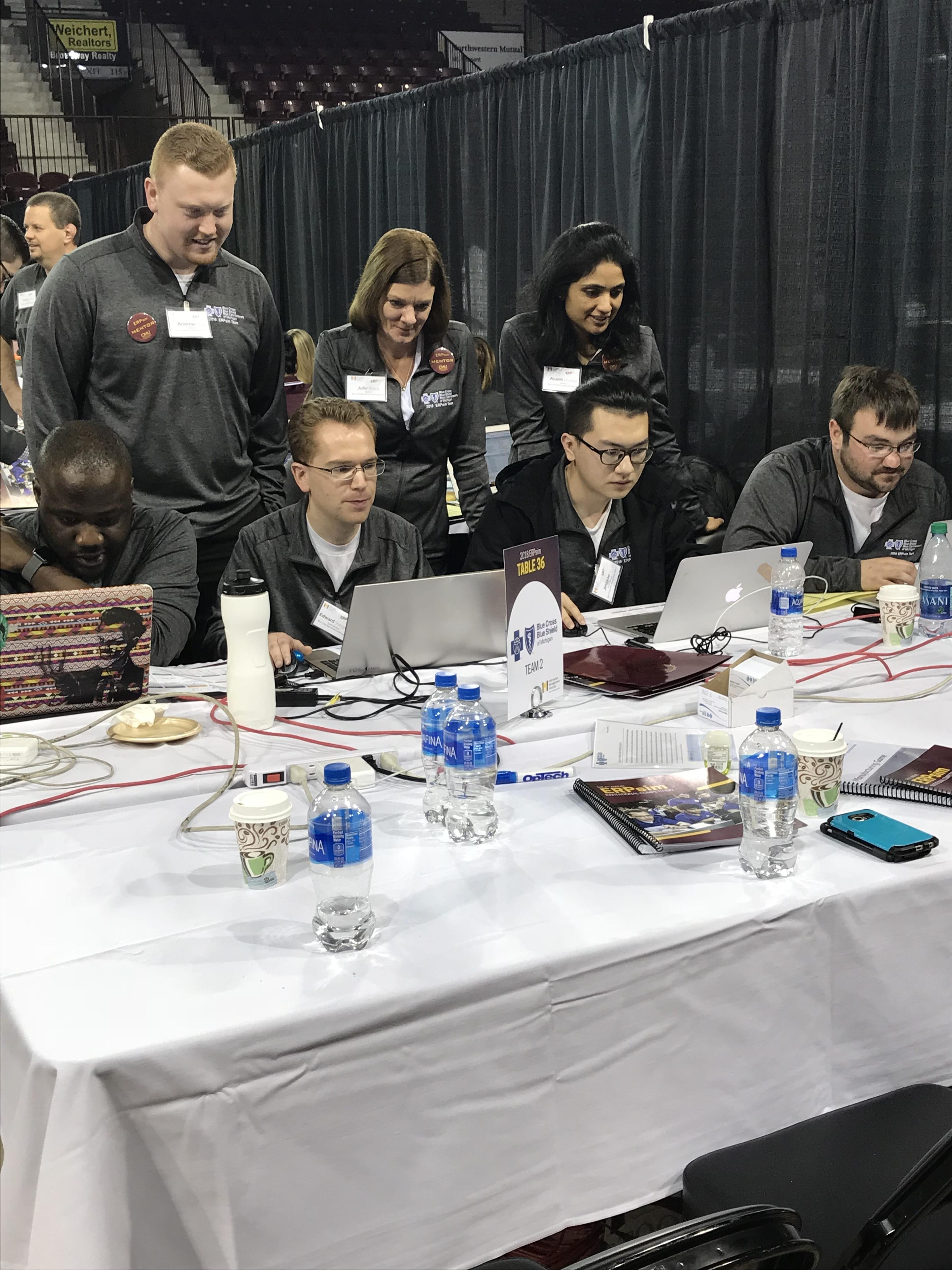 Imagine this: You, alongside more than 200 other students, are working with business professionals and executives from some of Michigan’s largest companies. At stake: the chance to win top prizes and earn an on-the-spot job offer. This dream was a reality for Central Michigan University students who participated in the 2018 ERPsim competition, held February 15. Blue Cross Blue Shield of Michigan was one of 37 participating companies at the event, which allows students to showcase their ability to manage real-life business situations using systems, applications and products in data processing (SAP) software. By the end of the competition, each team’s goal is to create a profitable simulated business. Mentorship Matters