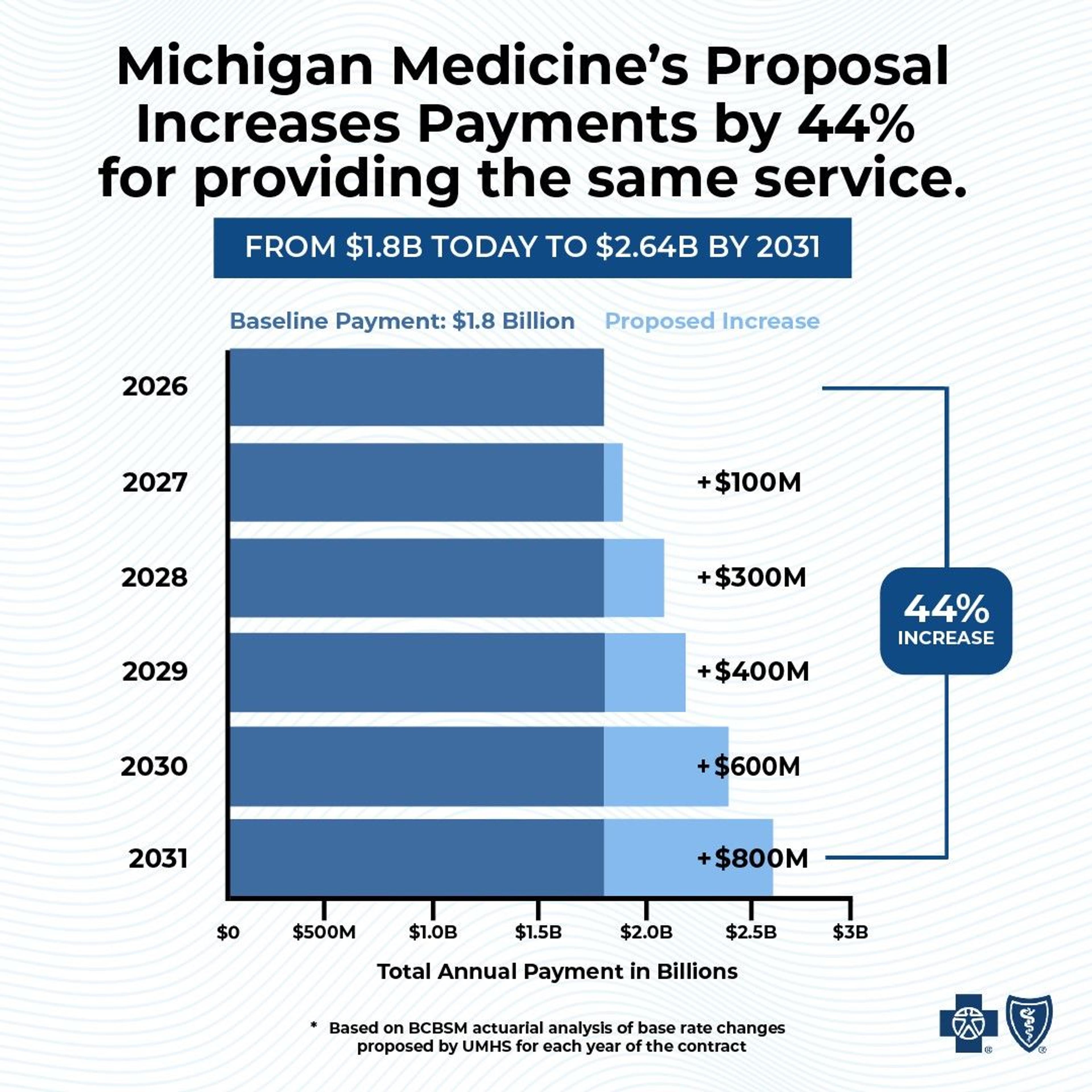 For 87 years, Blue Cross Blue Shield of Michigan has provided our members with access to quality medical care delivered by dedicated doctors and nurses at hospitals across Michigan – including the University of Michigan Health System. Blue Cross will never waver from the deep respect we hold for Michigan’s health care professionals. But today, health care costs are rising much faster than inflation. This is putting enormous strain on the budgets of families and employers. Blue Cross has an important role to play – we are your representative as we negotiate payment terms with providers. Every dollar paid to a hospital system ultimately flows into your health insurance premiums – and we have a responsibility to make sure rising costs don’t make your health insurance unaffordable.